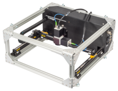 この3次元情報(データ)の測定では、図1に示すような2軸の自動ステージ上にセンサーヘッドを固定したスキャン機構を用います。このスキャン機構を用いて、テラヘルツパルス波の照射位置を測定物上で走査しながら各照射位置からの反射パルス波列を逐次計測することで、図2に示すようなXY面と深さ情報を合わせ持つ3次元構造のデータキューブを得ることができます。この3次元情報を取得する測定を3次元イメージング(Three-Dimensional Imaging)といい、得られた3次元データから測定物内部の様々な構造情報を抽出することができます。