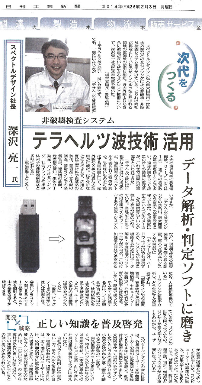 『次代をつくる~テラヘルツ波技術活用 データ解析・判定ソフトに磨き』